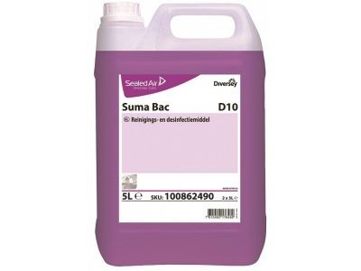 Suma Bac D10 is een geconcentreerd middel voor het gecombineerd reinigen en desinfecteren van alle oppervlakken in gelegenheden waar met voedsel wordt gewerkt (o.a. in grootkeukens), en voor het reinigen en desinfecteren van wanden, vloeren en meubilair in de gezondheidszorg (niet in tbc-afdelingen).